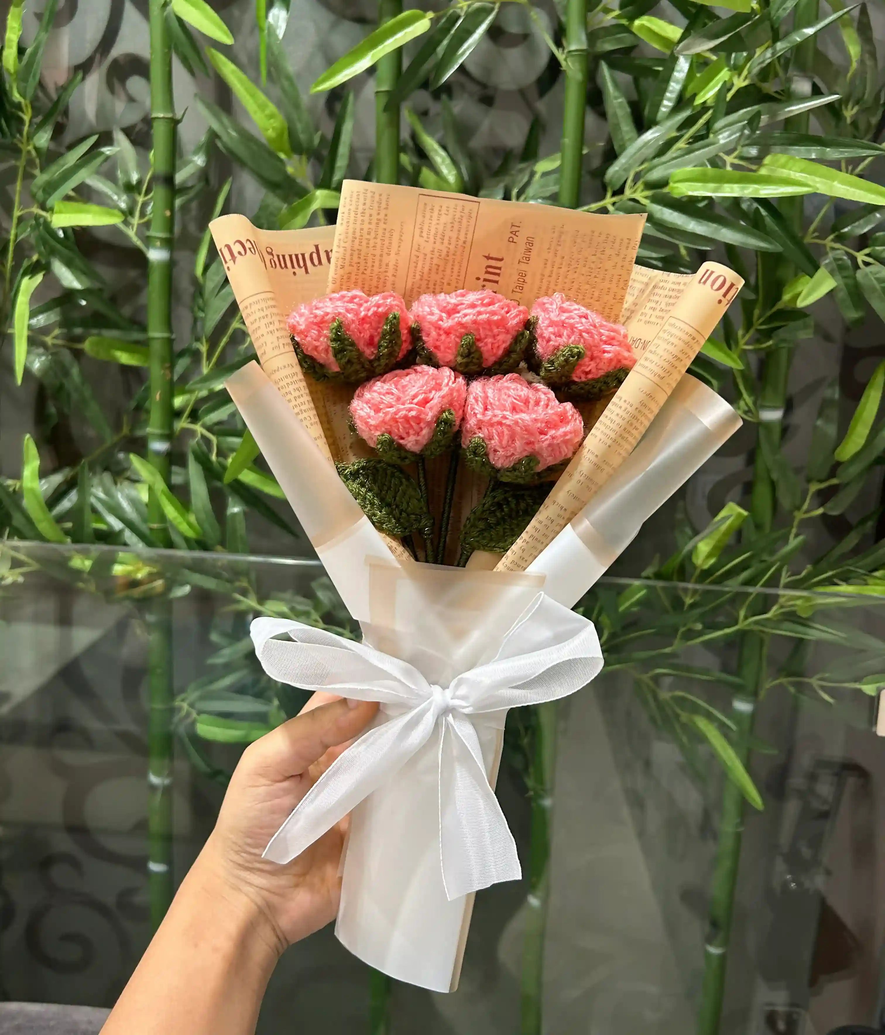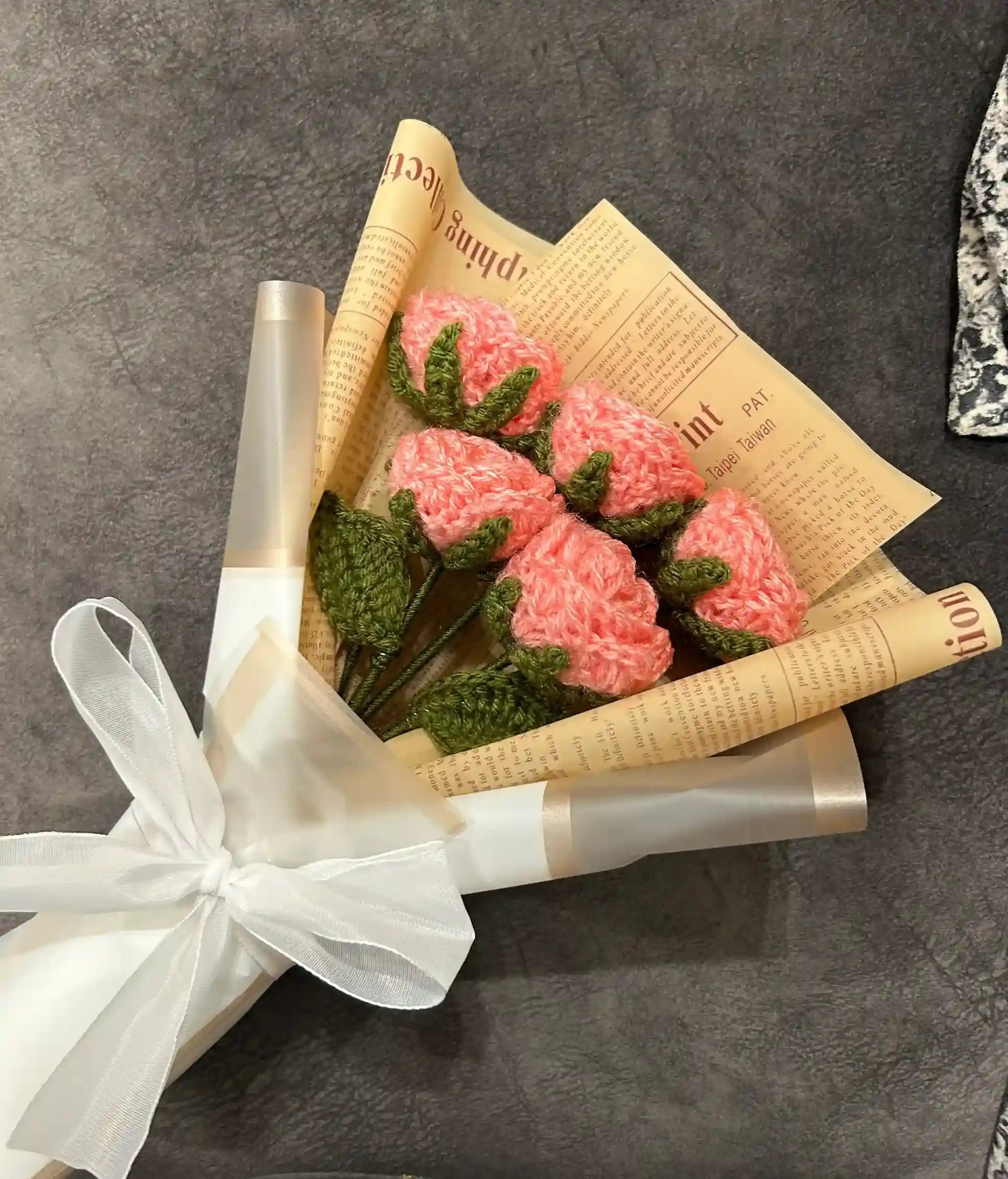 Our elegant crochet flower bouquets are the ideal gift for any occasion. Each bouquet is skillfully handcrafted with high-quality wool, providing a soft and long-lasting touch. Encased in premium packaging, these bouquets are perfect for birthdays, anniversaries, weddings, or to bring a smile to someone's face. Add a touch of elegance and charm with our timeless crochet flowers.