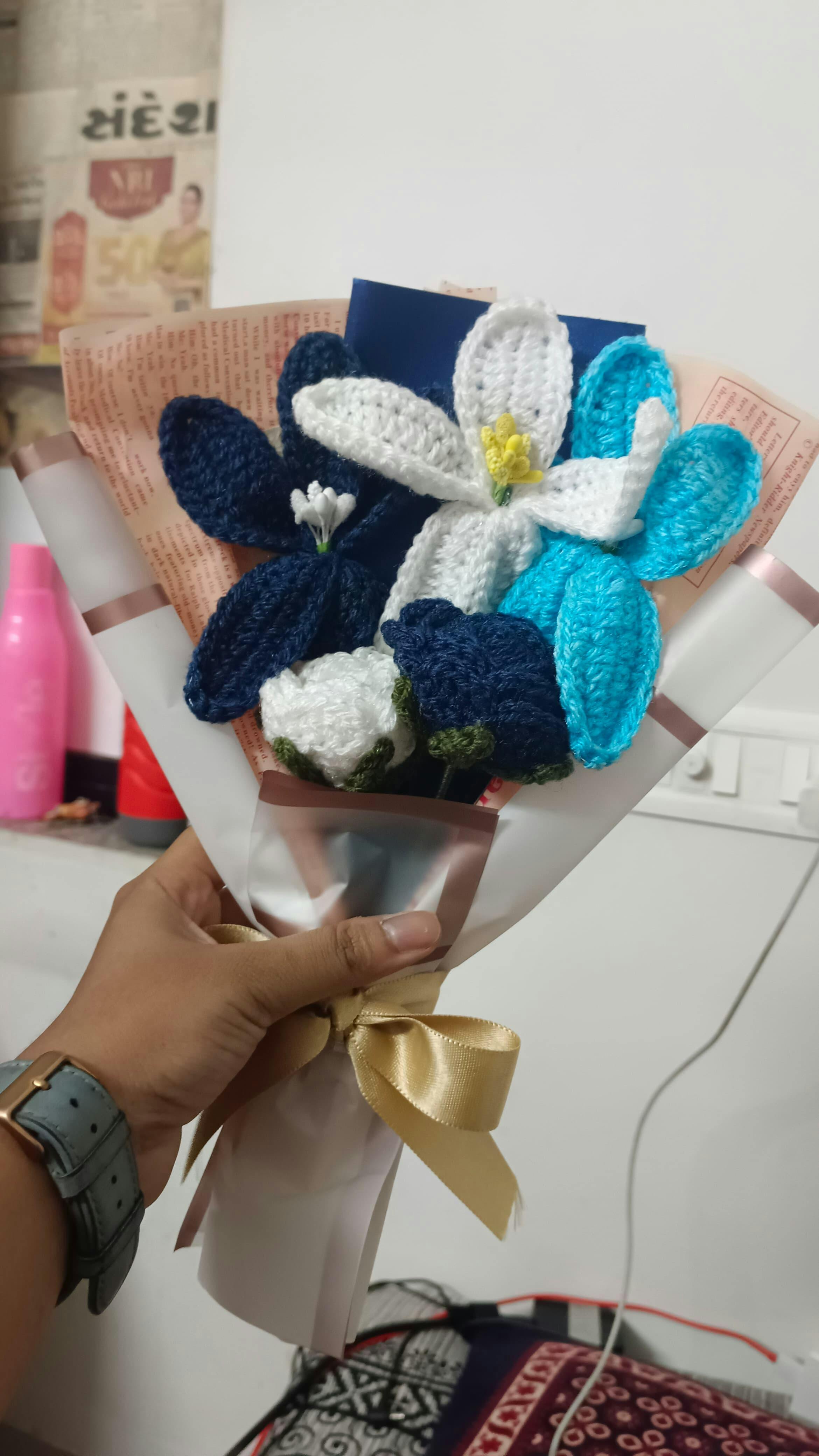 Bright, bold, and beautifully unique — this l Lily Crochet Bouquet brings a cool-toned charm to any setting. Whether you’re searching for a thoughtful gift or a handcrafted décor piece, this bouquet offers a long-lasting floral touch without the upkeep. A great pick for birthdays, home styling, or just to make someone smile.