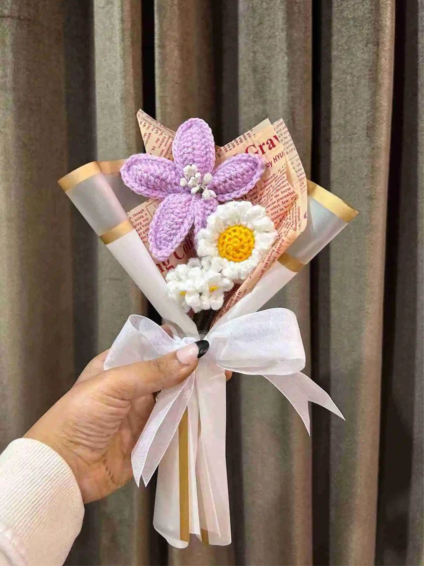 Our elegant crochet flower bouquets are the ideal gift for any occasion. Each bouquet is skillfully handcrafted with high-quality wool, providing a soft and long-lasting touch. Encased in premium packaging, these bouquets are perfect for birthdays, anniversaries, weddings, or to bring a smile to someone's face. Add a touch of elegance and charm with our timeless crochet flowers.