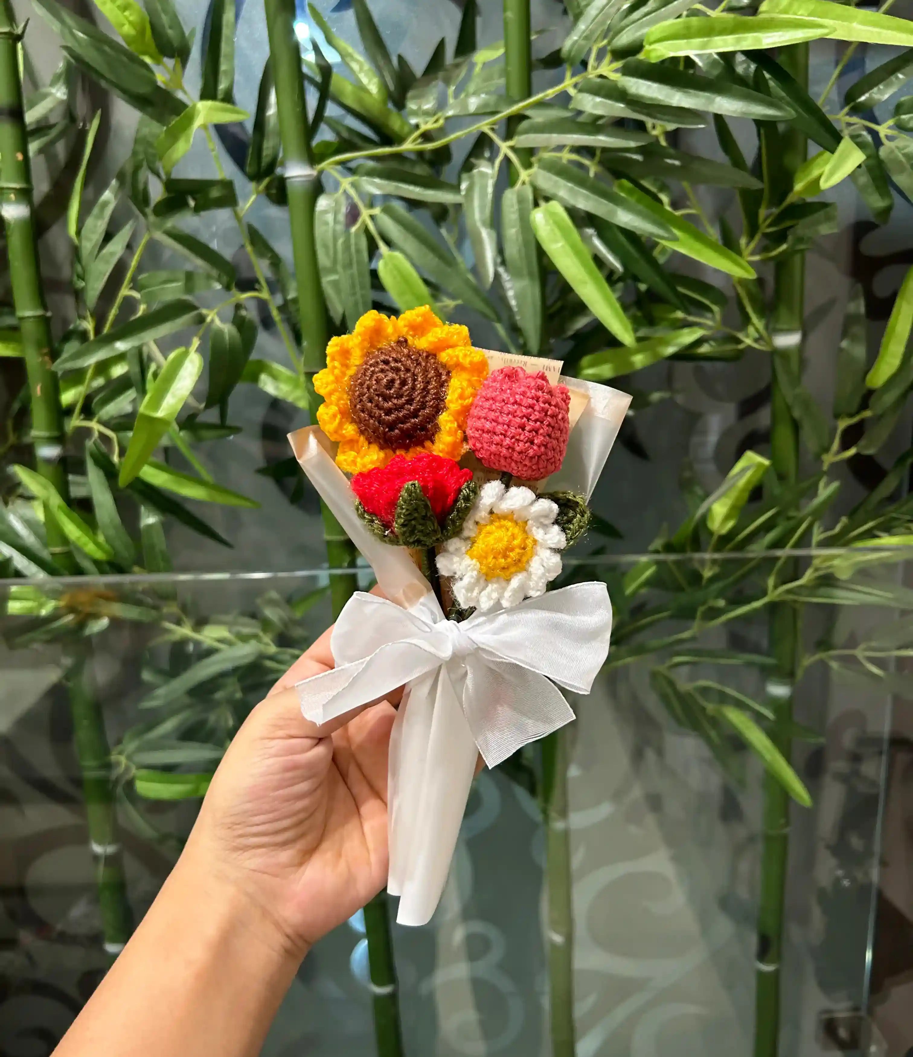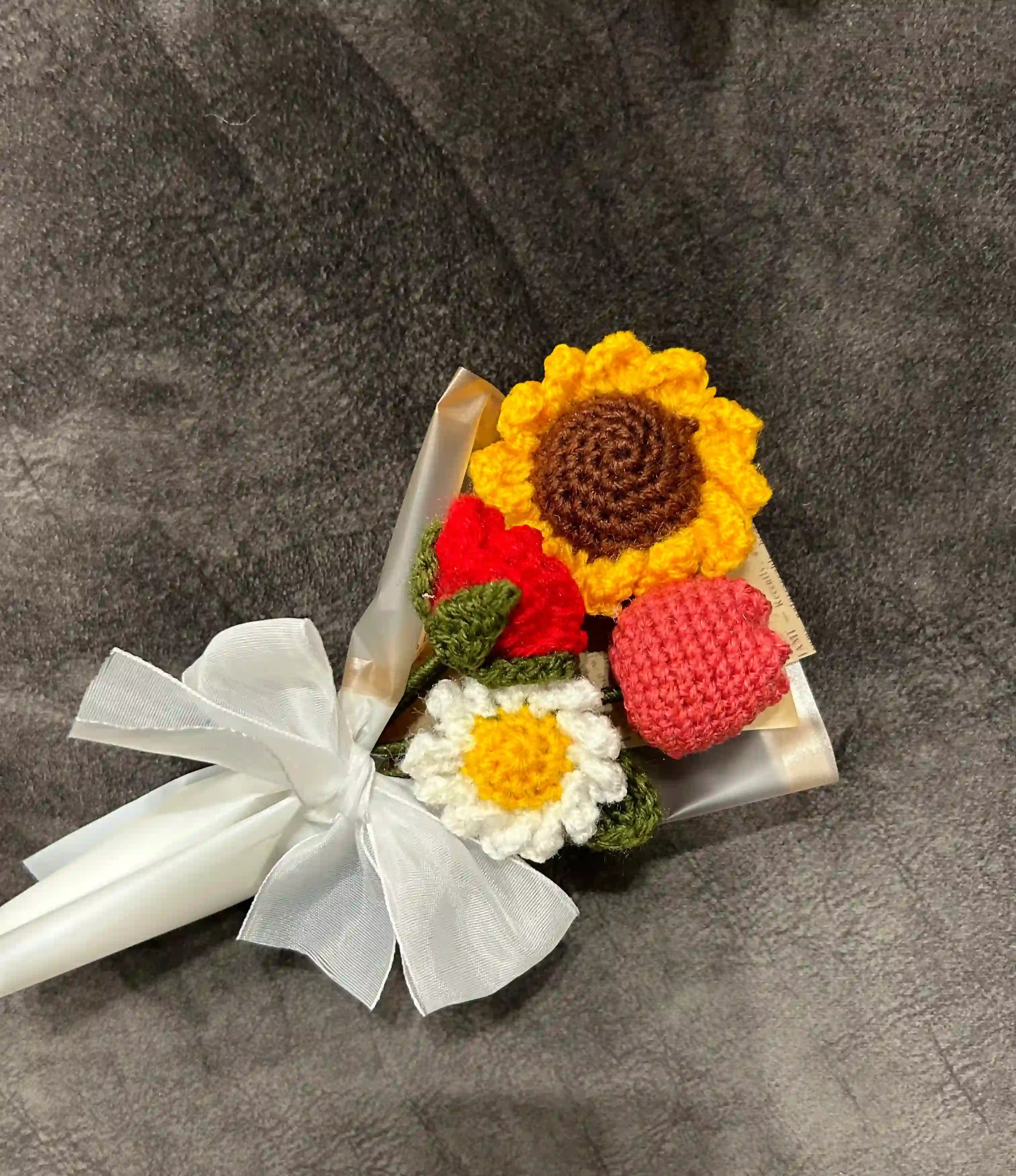 Our elegant crochet flower bouquets are the ideal gift for any occasion. Each bouquet is skillfully handcrafted with high-quality wool, providing a soft and long-lasting touch. Encased in premium packaging, these bouquets are perfect for birthdays, anniversaries, weddings, or to bring a smile to someone's face. Add a touch of elegance and charm with our timeless crochet flowers.