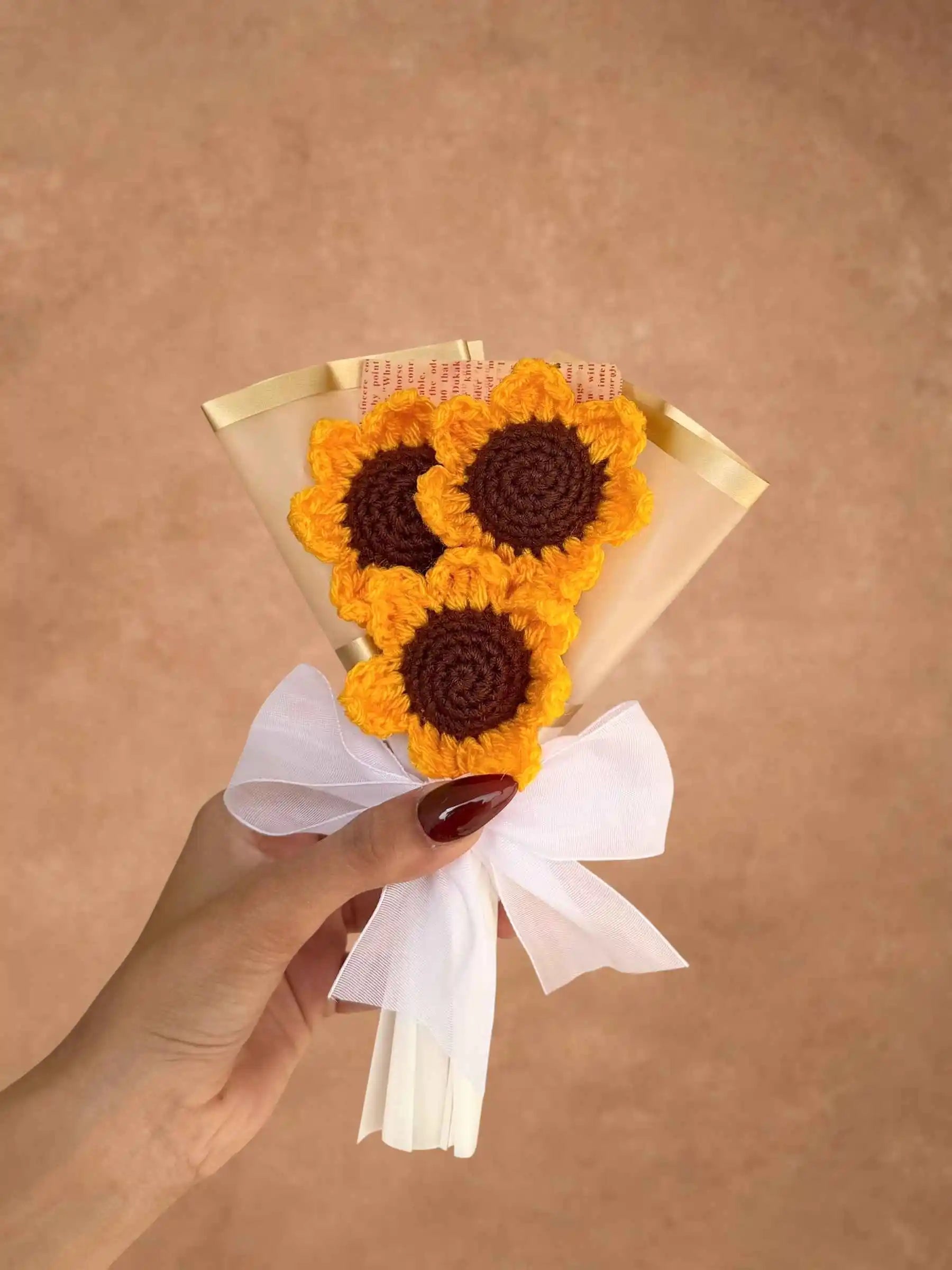 Brighten up any space with this charming set of 3 handcrafted mini sunflowers. Perfect for gifting or as a home décor piece, these vibrant sunflowers are made with high-quality yarn to ensure long-lasting beauty. Each bouquet is meticulously crafted to capture the essence of natural sunflowers, offering a cheerful touch wherever they are placed