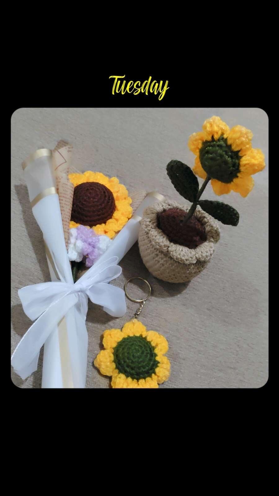 Our elegant crochet flower bouquets are the ideal gift for any occasion. Each bouquet is skillfully handcrafted with high-quality wool, providing a soft and long-lasting touch. Encased in premium packaging, these bouquets are perfect for birthdays, anniversaries, weddings, or to bring a smile to someone's face. Add a touch of elegance and charm with our timeless crochet flowers.